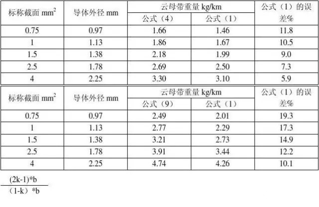 雲母帶的總重量W(kg/km)的計算: