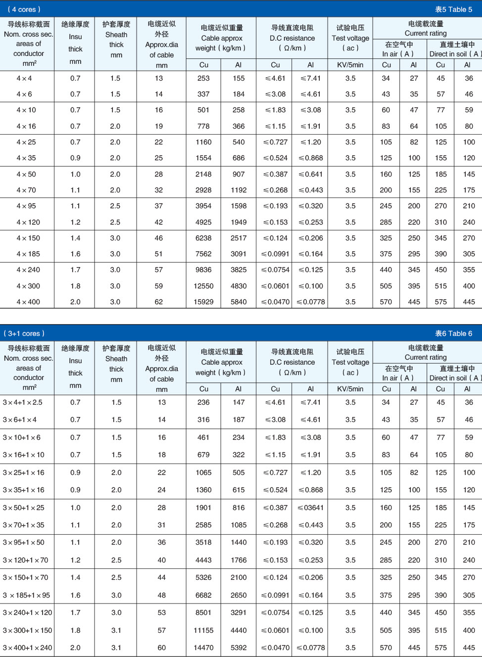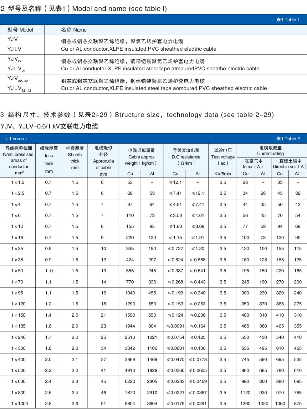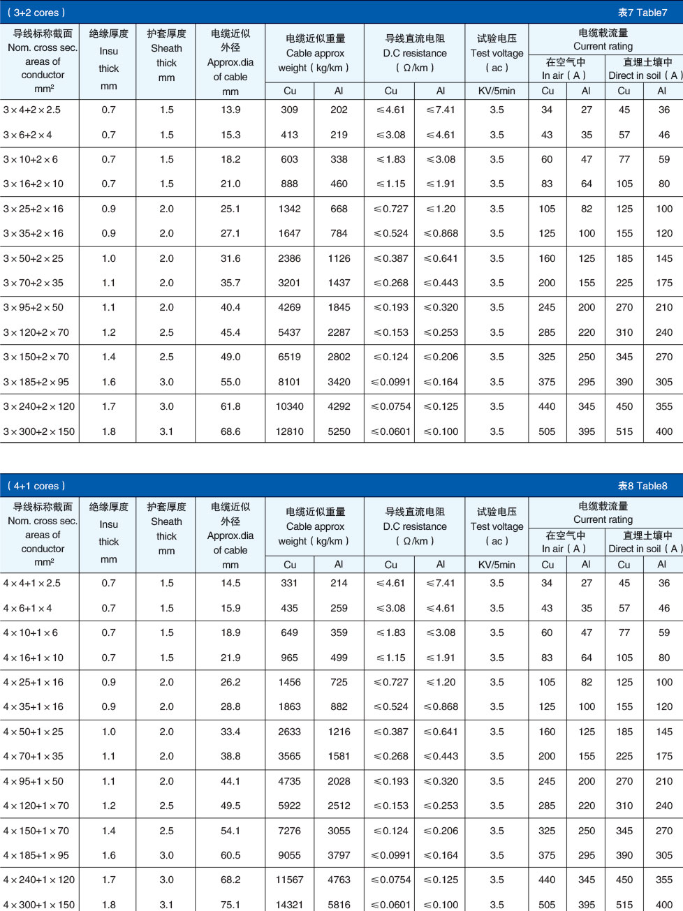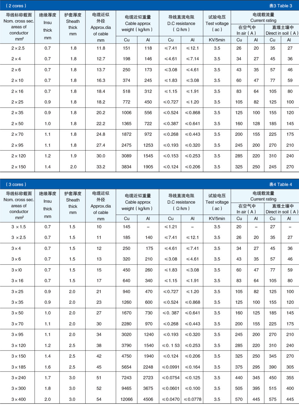 電纜用於額定電壓0.6/1, 1.8/3, 3.6/6, 6/10, 8.7/10, 8.7/15,12/20, 21/35, 26/35kV輸配電係統。