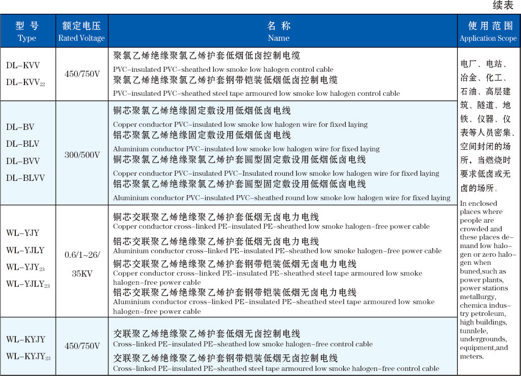This product is used in enclosed places which are crowded with people,such as power plants,power stations,metallurgy,chemical industry,petroleum,high buildings,tunnels,undergrounds,equipment,and meters.These places demand low halogen or zero halegon when burned.