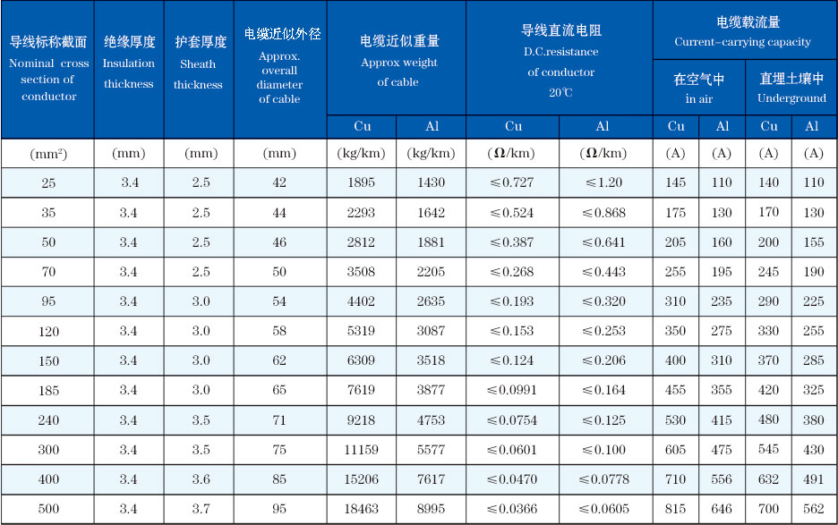2/Ⅱ 6/10kV 單芯交聯聚乙烯絕緣,細鋼絲鎧裝,聚氯乙烯護套電力電纜