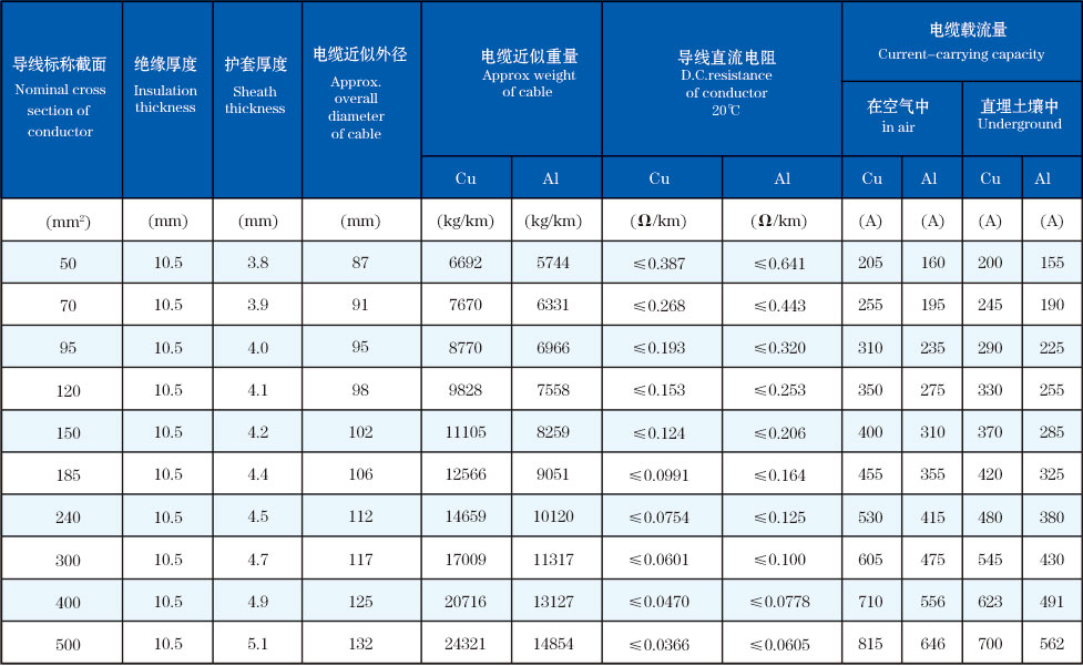 2/VI 26/35kV 單芯交聯聚乙烯絕緣,細綱絲鎧裝,聚氯乙烯護套電力電纜