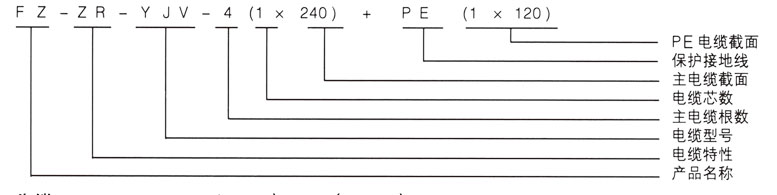 舉例:1、主電纜表達為:FZ-ZR-YJV-4(1×240)