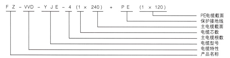 舉例:1、主電纜表達為:FZ-WD-YJE-4(1×240)