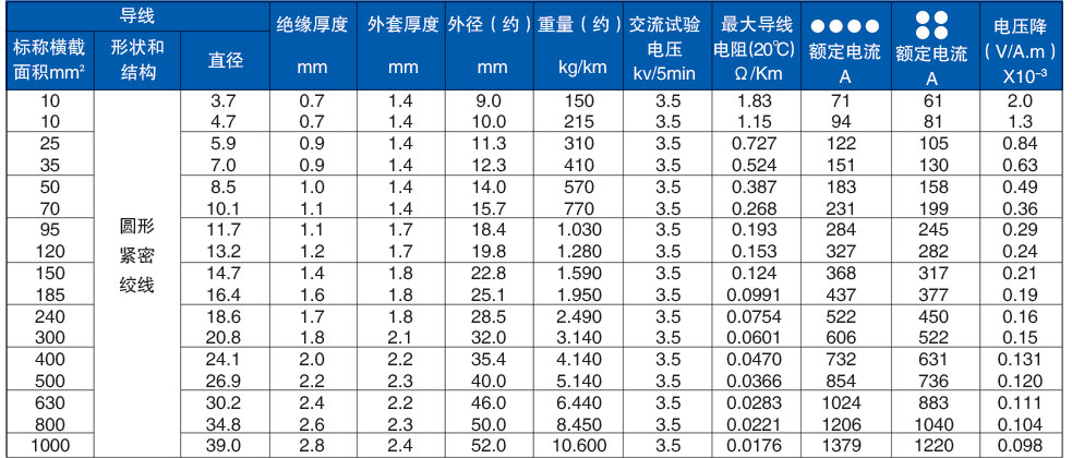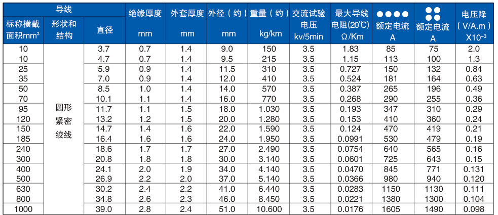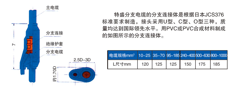 1、主電纜從10mm2到1200mm2分支電纜從4mm2到300mm2任意組合選用。