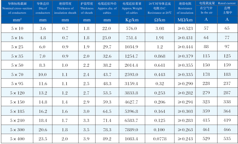 YJLHV22 0.6/1kV 五芯交聯聚乙烯絕緣鋼帶鎧裝聚氯乙烯護套鋁合金電力電纜